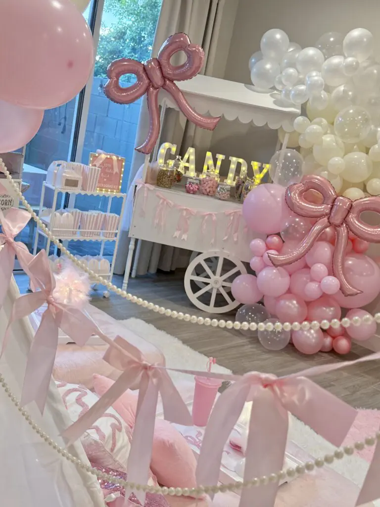 Add on extra touches like our giant marquee numbers, ballon garlands, craft stations, dessert cart, movie night must haves and more!