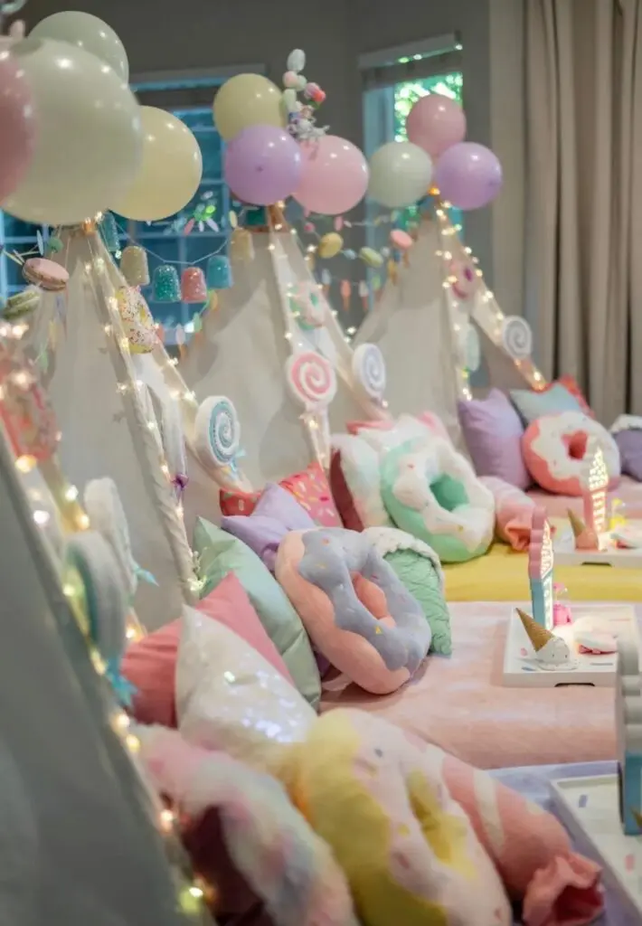 We offer a variety of themed teepee setups designed with everything you’ll need to host your dream slumber party